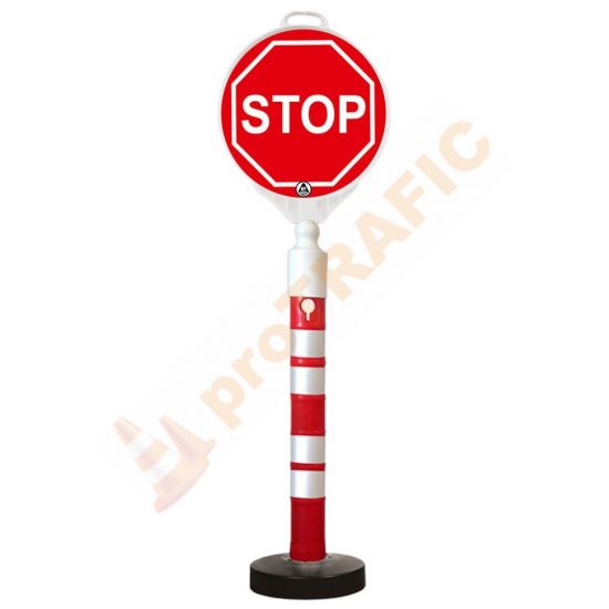 Stalp atentionare mobil 1200mm, 12kg cu indicator STOP cu baza de plastic umpluta cu nisip si o greutate de 12 kg, este un dispozitiv mobil si stabil, ideal pentru marcarea diferitelor spatii sau ghidarea traficului in diverse contexte. Acesta este confectionat din plastic durabil, este usor de manevrat si rezistent la conditii atmosferice variate.