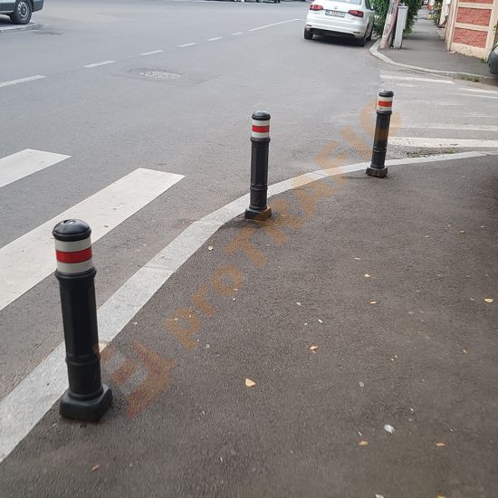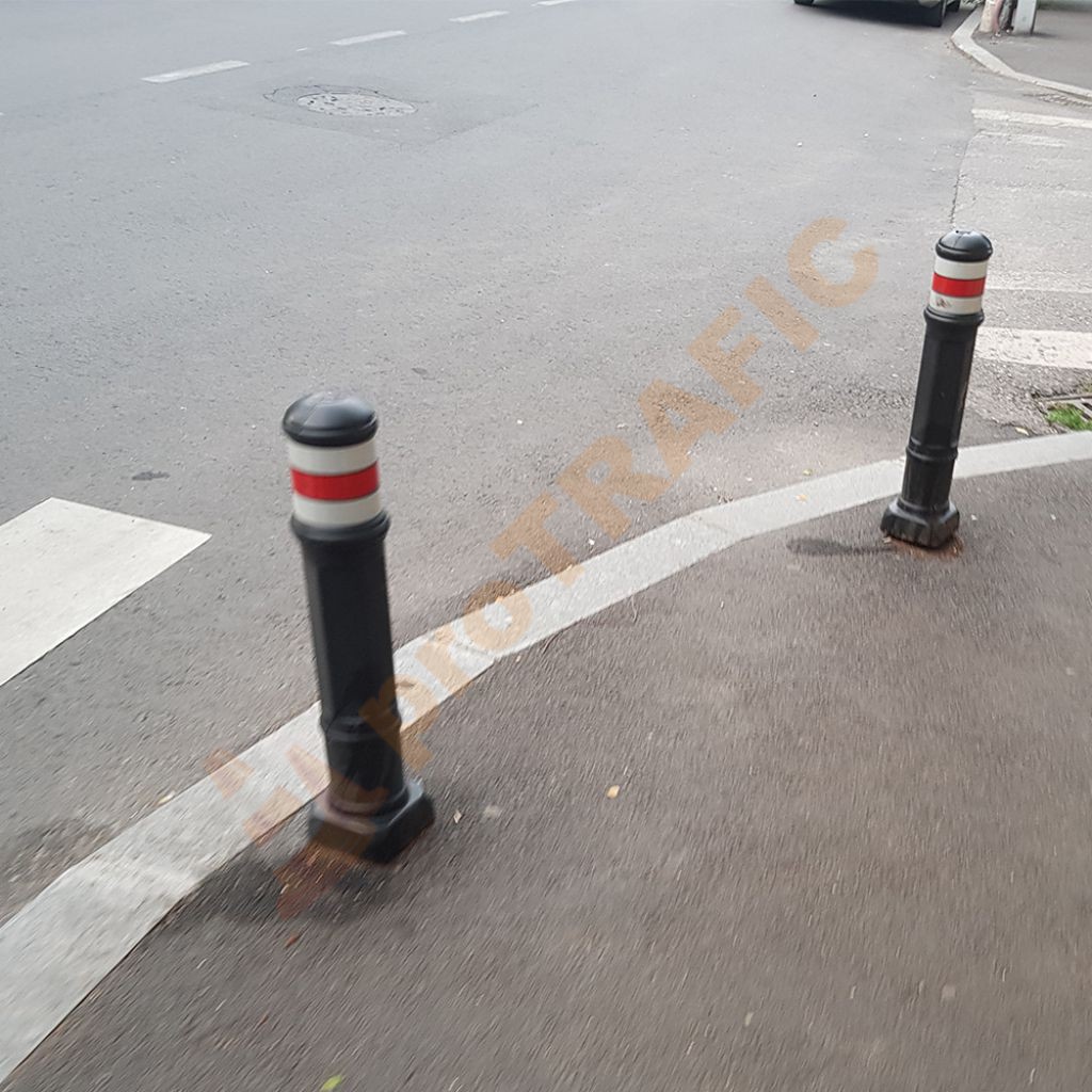 Stâlpii au suprafața lucioasă, înălțimea de 900mm, au culoare neagră și la partea superioară sunt prevăzuți cu trei benzi reflectorizante produse de 3M.