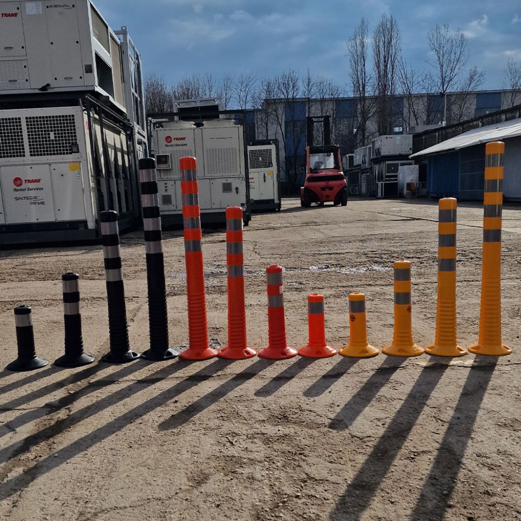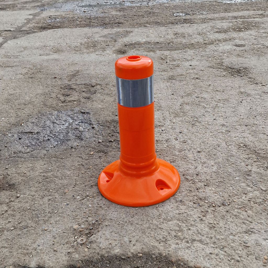 Stalp pentru semnalizare 300 mm, portocaliu din cauciuc realizat din poliuretan și are o rezistentă sporită la radiații UV. Stalp pentru semnalizare 300 mm, portocaliu din cauciuc ce îl putem folosi la delimitarea spațiilor, piste ciclabile, antiparcare, zonelor pietonale, a parcărilor, a zonelor cu circuit privat.